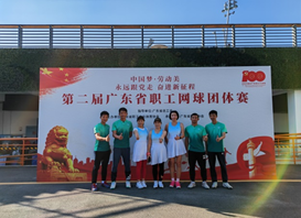 为深入贯彻落实党的十九届五中全会精神,积极推进体育强国、健康中国建设,不断丰富职工文化体育生活,增强职工健康素质,为喜迎建党100周年营造良好氛围。由广东省总工会指导,广东省职工文化体育协会主办,广东省网球协会承办的“中国梦·劳动美——永远跟党走奋进新征程”第二届广东省职工网球团体赛10日在广州开发区国际网球学校落幕。57支队伍经过四天111场团体赛,311盘比赛激烈的角逐,最终,我校职工进入第二轮赛季,获得16强席位,取得优异成绩!