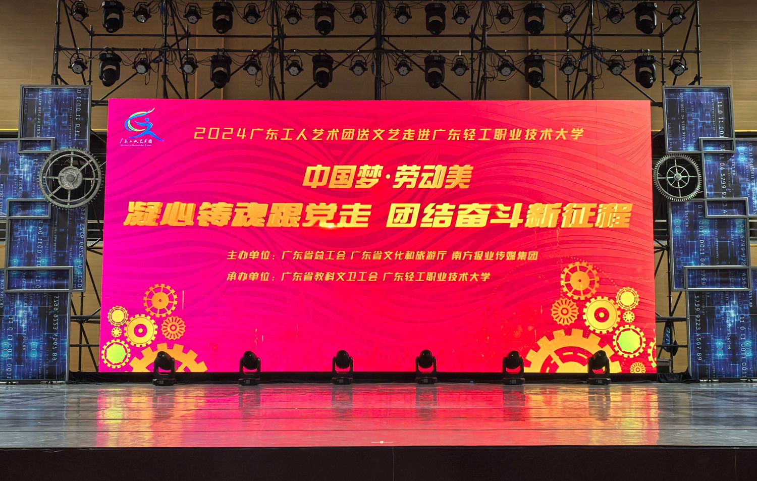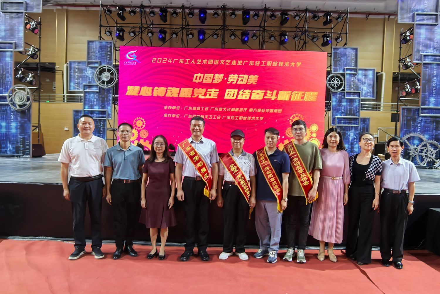 9月13日晚,由省总工会、省文化和旅游厅、南方报业传媒集团共同主办的“中国梦·劳动美”广东工人艺术团送文艺进校园活动在广东轻工职业技术大学南海校区举行。广东省教科文卫工会主席谢岩梅、广东省总工会基层工作部副部长张旭辉、广东省教科文卫工会副主席胡建钢、广东轻工职业技术大学党委副书记梁艳珍、广东轻工职业技术大学原副校长、全国轻工行业先进工作者林润惠等领导及嘉宾、劳模、600多名师生共享这场文艺饕餮大餐。